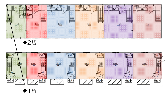 3~6号室:1階15.88坪 2階20.19坪 264,000円